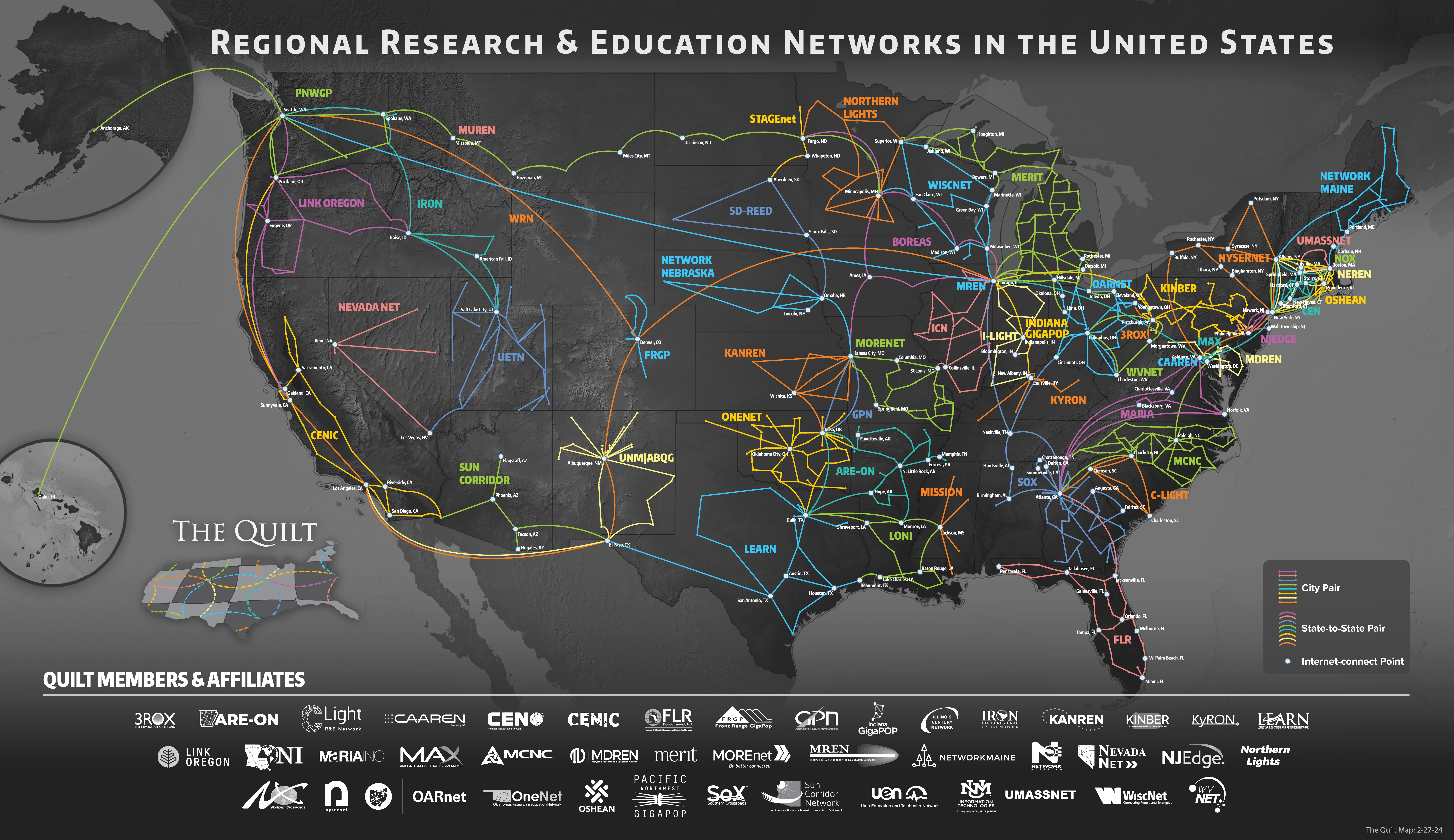 The Quilt is a national coalition of advanced regional RENs. The Quilt represents 43 networks across the country. Through the collaborative forum of The Quilt, member organizations have access to a broader set of expertise and knowledge than any single organization working on its own.